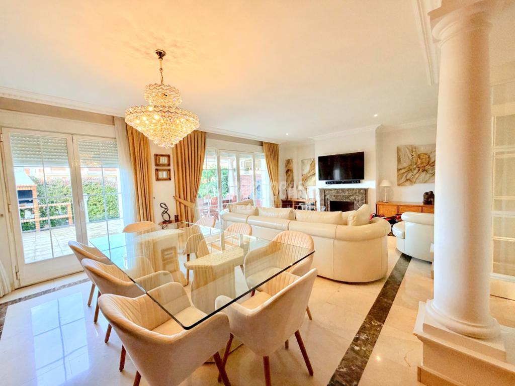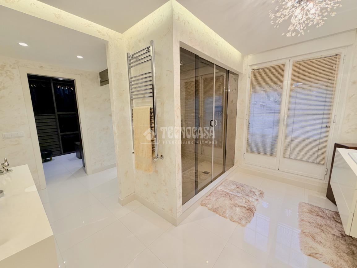 Dispone de siete habitaciones, cuatro baños dos de ellos en suite y un aseo además de amplia terraza en primera planta con vistas panorámicas, y dos grandes patios internos privados con barbacoa, porche cubierto y comedor exterior, cuenta con plaza de garaje y ascensor interior para máxima comodidad.